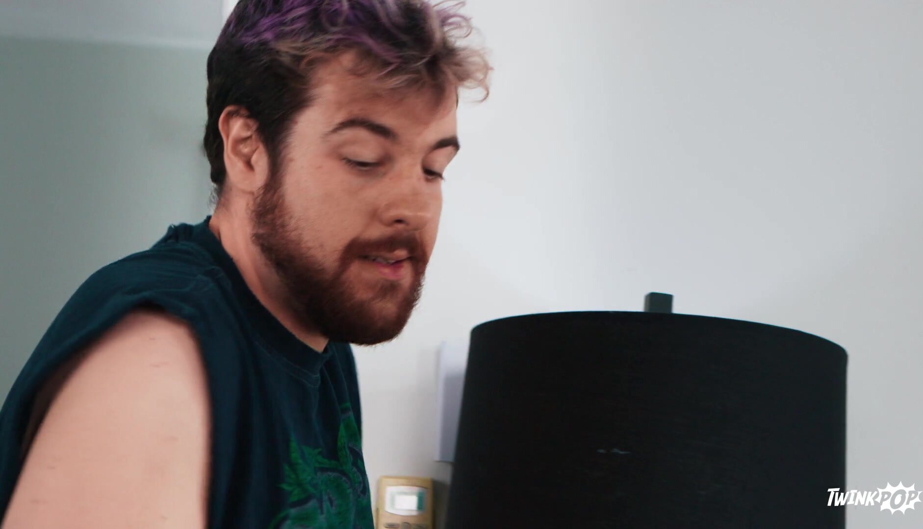Leo Louis keeps getting interrupted by his burnout roommate while he's making out with his boyfriend, Andy Adler. The guys ask for some privacy, but while Andy goes to wash up, Leo is horny and frustrated and decides to use some of his roommate's special glassware to get relief! As Andy returns, he sits on Leo's face and the twinks 69, not realizing the roommate comes out to watch them some more! Leo fucks the bottom doggystyle and piledriver, then Andy sits on that dick. Leo fucks the cutie on his back till he pulls out and shoots, then watches Andy use his cum for lube till he orgasms.