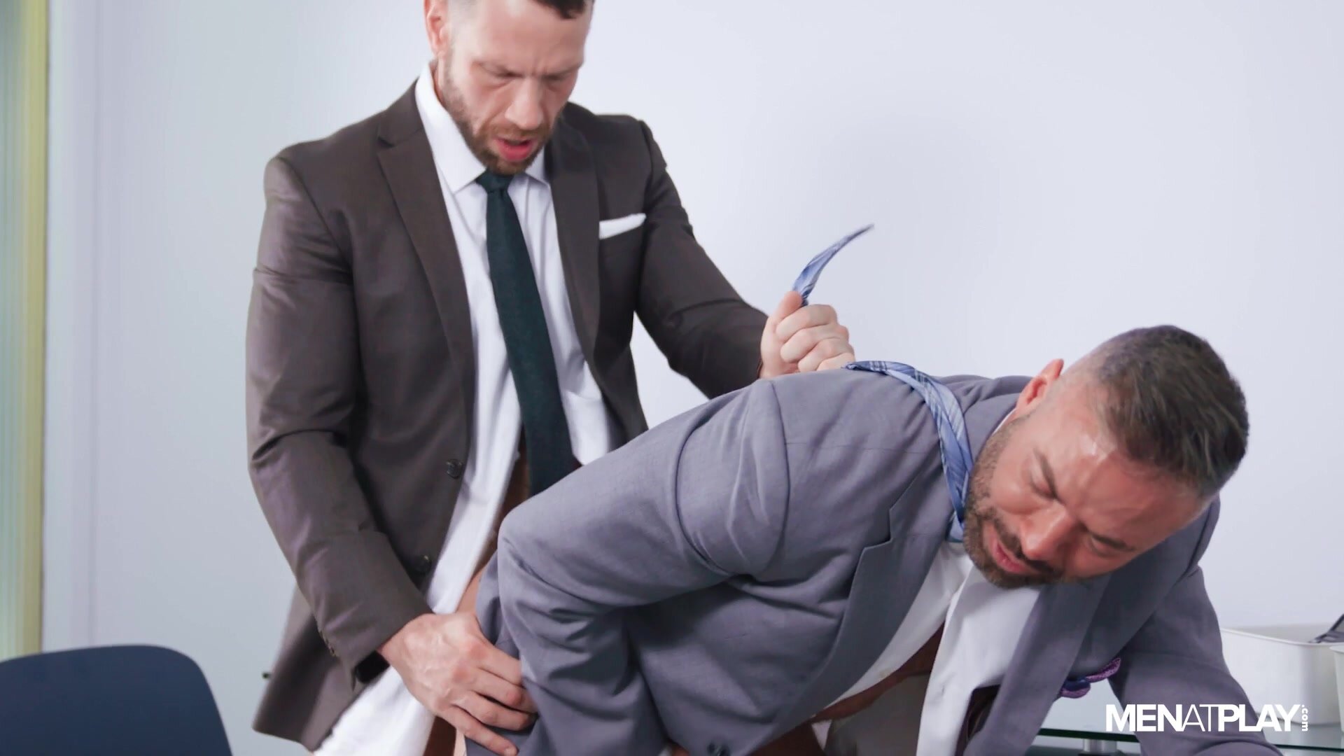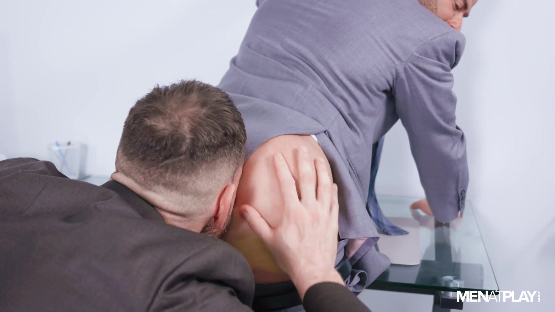 With no choice but to accept the terms, Leo gets on his knees and begins to suck Kit's big cock and then is bent over the desk for a deep dicking. Leo confesses that he has been waiting for this moment for a long time… he just needed the right leverage!