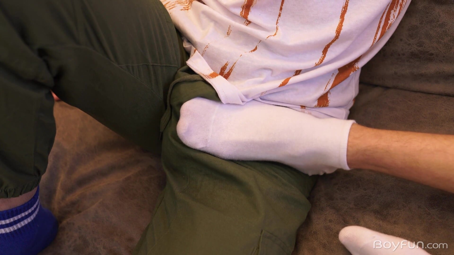 Inked boy Max Gen loves to get a little kinky with his friends, but you know Tony Keit isn't complaining in this BoyFun session. The cute little guy is enjoying a book on the couch when his friend arrives and shows an immediate interest in his perfectly white socks, but he's even more interested in the boy's naked feet. With a little groping of swelling bulges Max is soon making the most of his young friend's bare soles, sucking on his toes, licking between them and worshiping those naked feet. It's truly a delight for any fan of foot play, but you can be sure they're not going to end with this. The pleasure swells immeasurably as their clothes come off. Max's hard cock is soon sandwiched between Tony's feet for some foot wanking, his long uncut cock rubbing between them while his tip leaks precum. He can't resist getting a taste of young Tony's delicious dong and spends a while sucking him, but the boy's hole is right there and just as eager for that oral attention. With some hot rimming and hole play Tony gets a taste of his buddy's big dick and savors the juices leaking from his helmet, but the fucking these boy share is the ultimate enjoyment. Max plunges his raw cock inside his friend and gives him a glorious pumping on his back, but he's soon demanding a dick in his pucker and impales his ass down on Tony's equally impressive shaft. It only takes one more swap in this flip fuck, with some spooning on the couch, to have these boys ready to bust out their loads. Tony pumps his cream from his dick in a flurry of orgasmic bliss and in moments Max is ready to wank out his own heavy cream all over his pal's sexy naked foot. It's the perfect finish for a foot-loving boy like him.