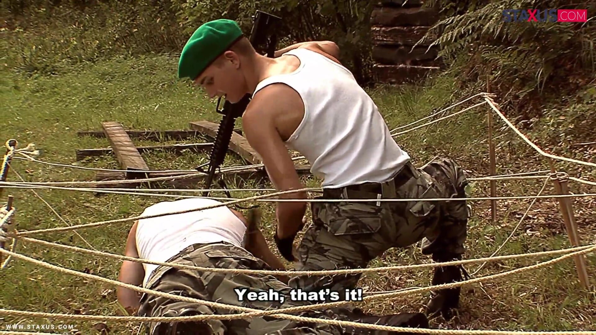 This soldier may feel sorry for him, but I bet this bottom enjoyed it! The sergeant knows how to make his soldiers keep up! After such an endeavor, it's good to rest a bit and recharge batteries. Well, I'm not sure about batteries, but it's sure this guy got his ass recharged; that's what the sergeant likes, a good tight hole to enjoy with his cock after the hard work! And if he can even get a blowjob to shoot his load... even better!