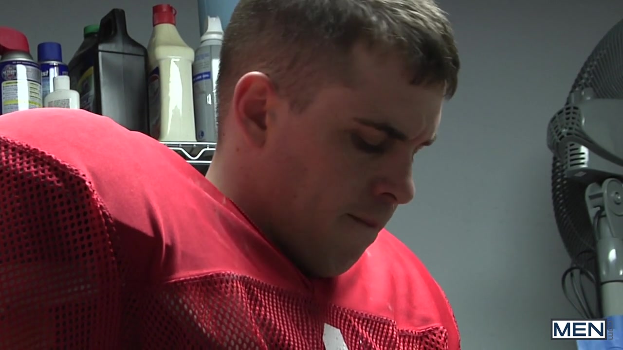urns out Colby's got a hard on for Darin so he takes him to the janitor's closet where he lathers his fat cock before taking it deep in his hole.