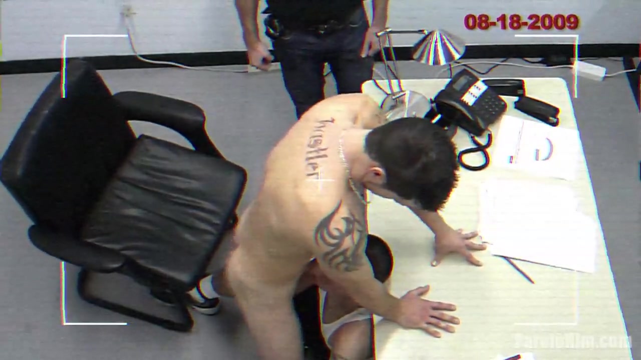 Mike Covington, age 27, served a short prison sentence for assaulting his girl friend. Immediately following his release, Covington reported to his Parole Office as per the release instructions. As seen in this video recording, almost immediately after his arrival Officer Winters instructed Covington to take off his pants and another Parolee Benjamin Gibson went and perform oral sex on him. Gibson was on Parole for a minor possession charge. During the meeting he later had anal sex with Covington.
