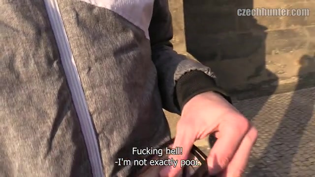 Description: Another freezing morning in Prague. I tried my luck at a subway station to hide from the cold. There I met Mira and Eliska, a young couple on their way home. They were very cool and wanted to play with me. Eliska was a bit jealous so she just showed me her boyfriend’s cock. She was too scared to let Mira with me alone, I guess. Well, it wasn’t that hard to find another new friend for the day. His name was Michal and he came to Prague to get wasted. His own words. That was the guy I was looking for! He wanted to do some serious clubbing over the weekend. That can be very expensive. I was ready to improve his budget, he just had to play along. And he did. He cursed and moaned a lot while my cock was stretching his tiny ass out.