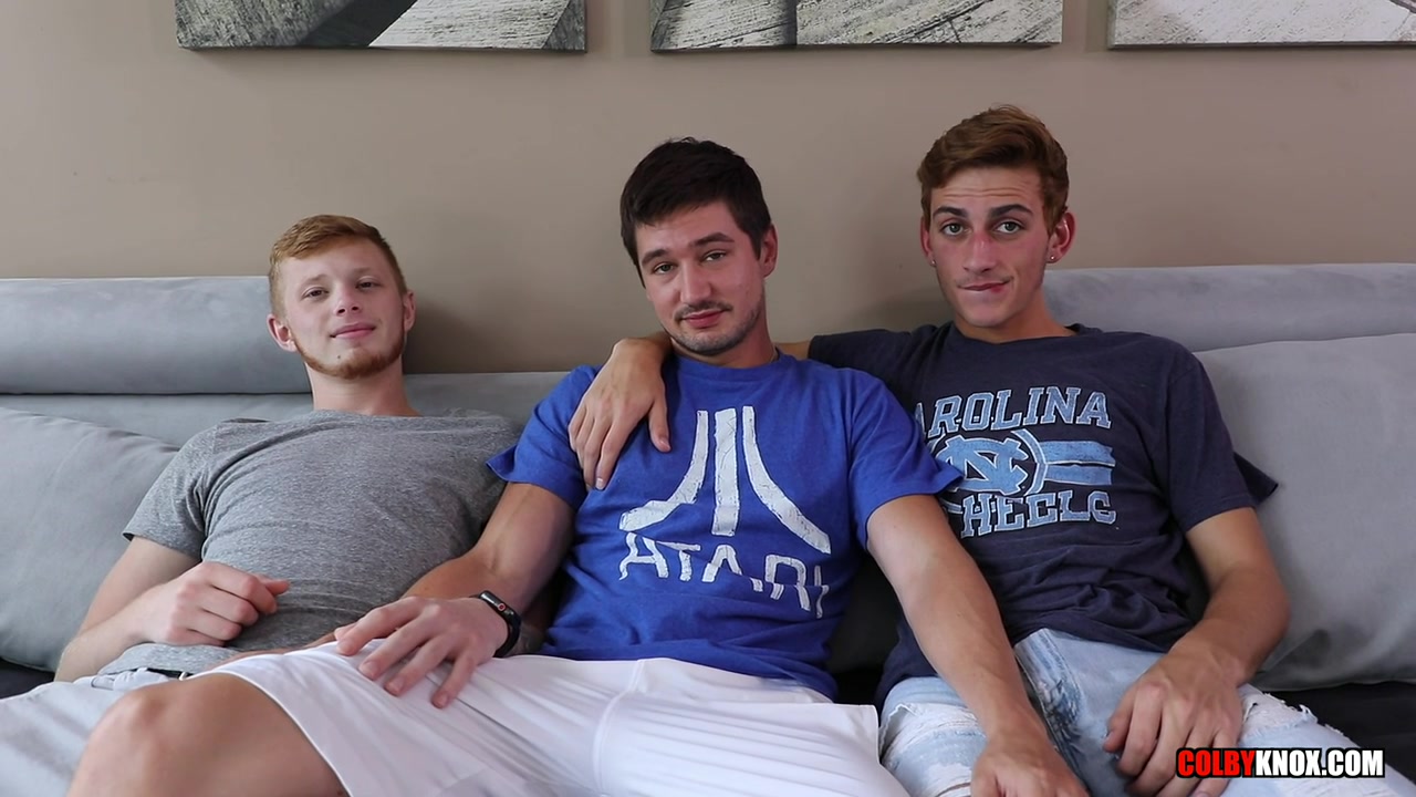 In this new gay porn video release from ColbyKnox, its Mickey Knox's birthday!!!!! Its no secret that Mickey is a huge voyeur, this stud loves to watch. Mickey wasn't shy in letting Colby Chambers know exactly what he wants this year. Zach Covington and Scotty Knox were more than happy to lend a hand, and the rest of their sexy bodies as well. Colby Chambers is clearly in heaven from the very start of this video, grabbing both Scotty and Zach's asses and going back and forth making out with them and putting his hands all over both boys toned smooth bodies. Scotty Knox and Zach start going to town sucking on Colbys big hard cock, taking turns wrapping their wet lips around his throbbing dick. Colby turns Zach Covington and Scotty Knox into an ass buffet next, like a kid in a candy store Colby just cant get enough- tonguing and licking both the boys, making them each moan and beg for more. Colby Chambers continues to check with the birthday boy throughout the video, making sure he is delivering on his present to his voyeuristic husband. Colby getting the nod, begins to sink his big thirsty cock inside of Scotty Knox while Zach looks on in lustful envy, knowing his turn is coming. Scotty and Zach take turns getting ravaged by Colby as he thrusts and pumps each boy harder and harder with each thrust. This one ends with all boys getting what they need in the form of some well earned and very hot cumshots, Mickeys favorite. Icing on the cake... - Colby Chambers, Mickey Knox, Scotty Knox, Zach Covington