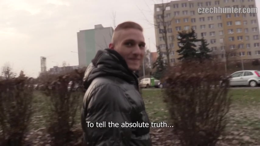 I started hunting near a shopping mall but things didn't go well at first. No one was willing to talk, so I decided to change location. While I was waiting for a tram that would get me somewhere more promising, a guy with a suitcase stood next to me on the platform. He was pretty and I immediately got interested. I switched my camera on and approached him. He was a bit nervous about me at first but my charm calmed him down eventually. I learned he worked in IT and went to Prague for a little vacation. IT guys are usually hard to convince but this one had to be new at the job because my offers worked quite well on him. It didn't take very long before we ended up at his hotel room. He was just stunning. His muscular frame made me incredibly horny, and I went absolutely crazy over his huge boner.